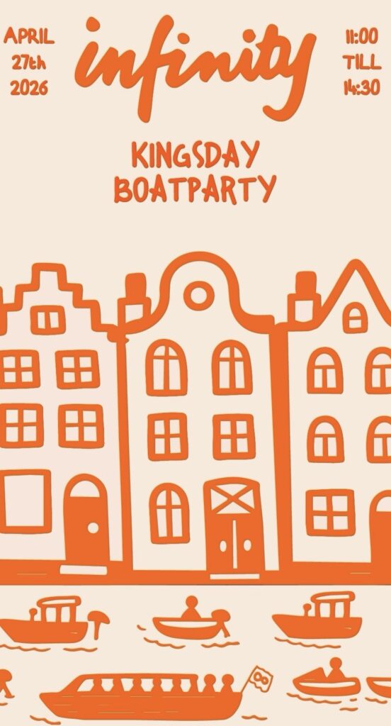 Op zondag 27 april 2026 varen we weer door de stad met de beste vibes, dikke muziek en een boot vol mensen die maar één ding komen doen: Koningsdag vieren zoals het hoort.